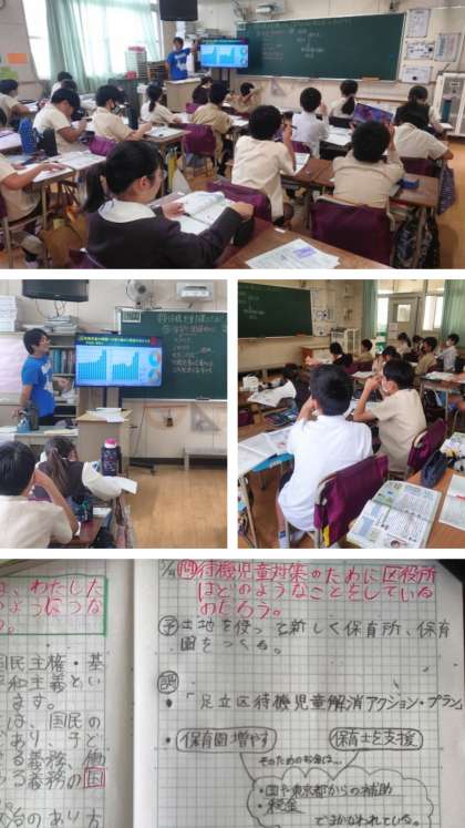授業の終わりに、待機児童お数が増えていくと、社会にどのような影響を与えるのかみんなで考え、意見を出し合いました。