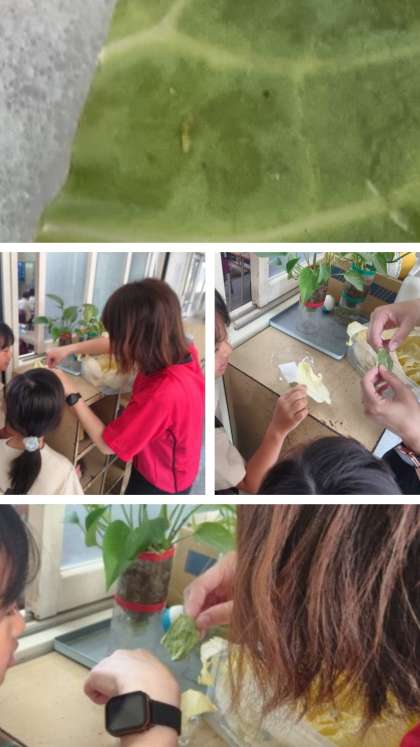 3年生の教室で、チョウの幼虫がまたうまれました。