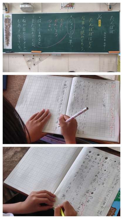 今日は、たんぽぽがどんな草なのか本文から読み取り、ノートにまとめました。