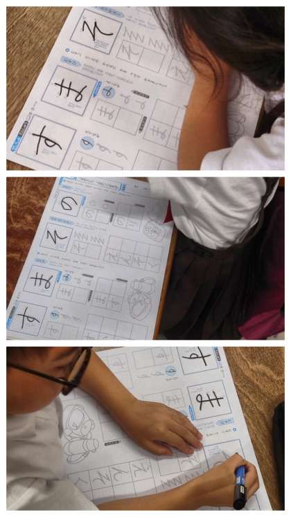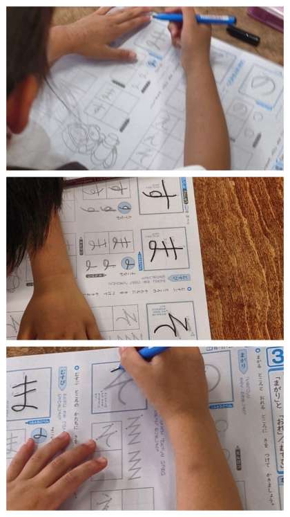 かきかたの時間は、ひらがなの「の」「そ」「ま」「す」の字を練習しました。