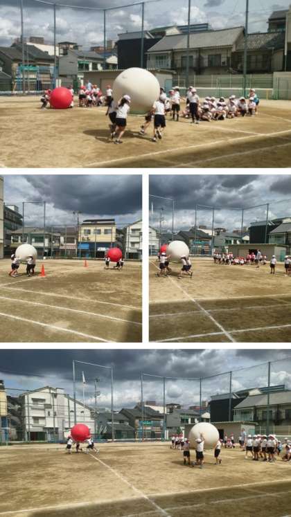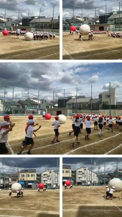 運動会に向けて、団体競技「大玉運び」の練習に取り組んでいます。