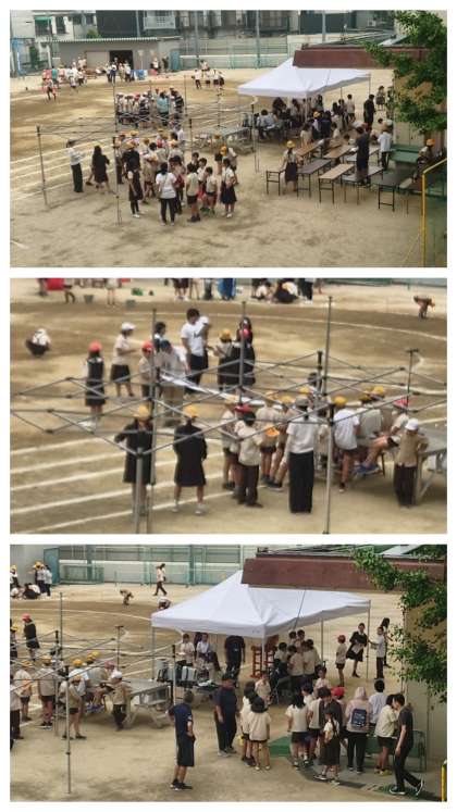 子どもたちは、役割分担にそって、日曜日の運動会に向けて打合せや練習、動きの確認、競技の用具やいす、机などの準備などを行いました。