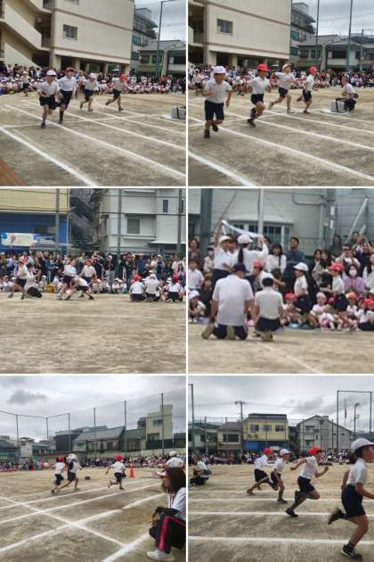 3年生の徒競走「力いっぱい GOALをめざせ!」。