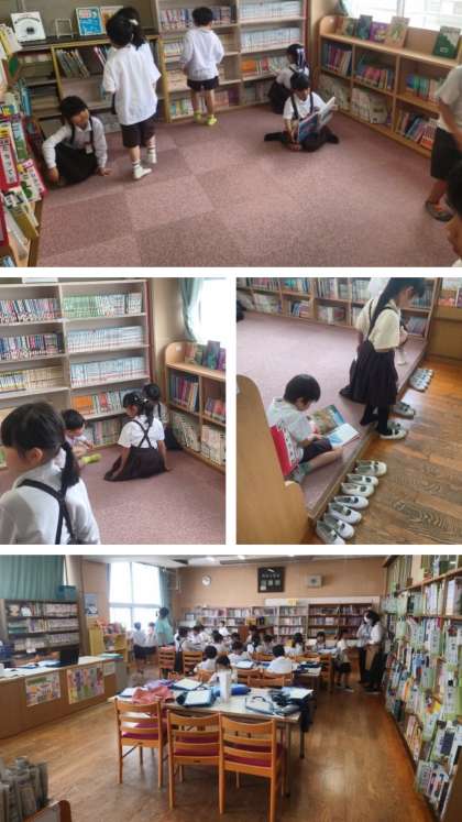 子どもたちが、自分で選んだ本を静かに読んでいます。