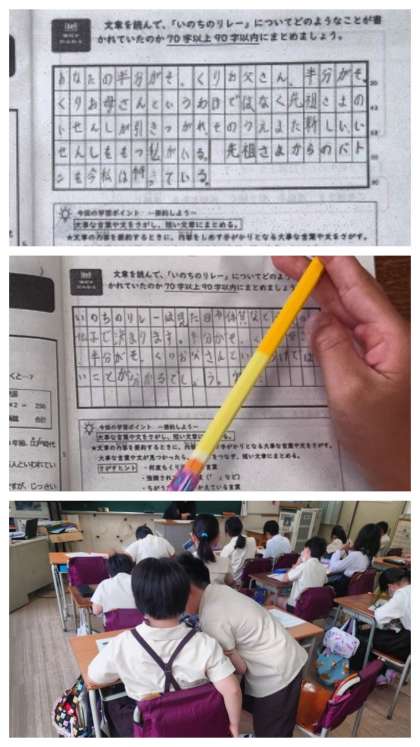 今日は、「いのちのリレー」という「命」はどのようなものなのかについて書かれた文章を読んで、内容を要約しました。