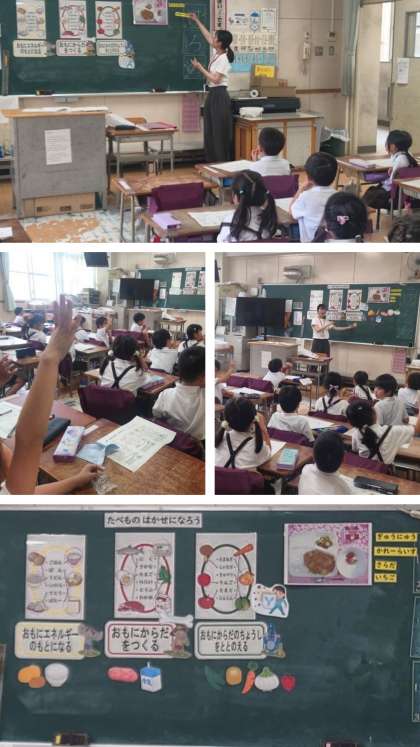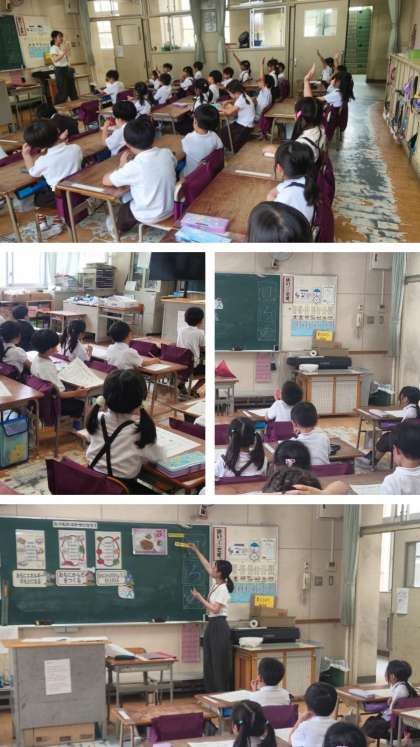 本校の栄養教諭が、1年生の教室で栄養指導を行いました。