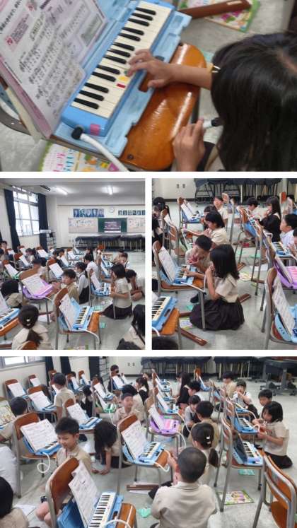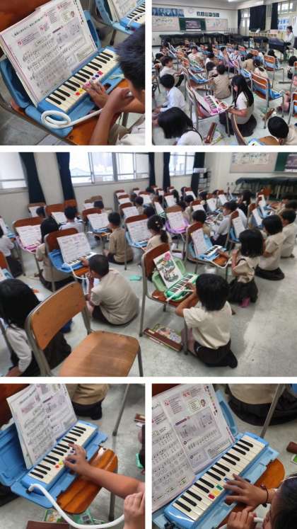 音楽科の時間は、鍵盤ハーモニカで「海風きって」の曲を練習しました。