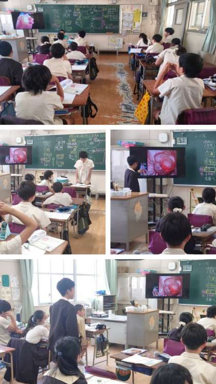 理科の時間は、動画を見ながらヒトの血液の流れやはたらきについて調べ、ノートにまとめました。