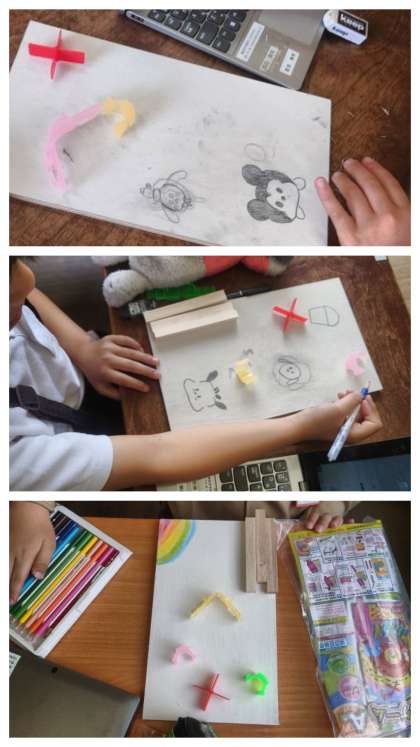 今日は、仮り組みをして、板に下絵を描いていきます。