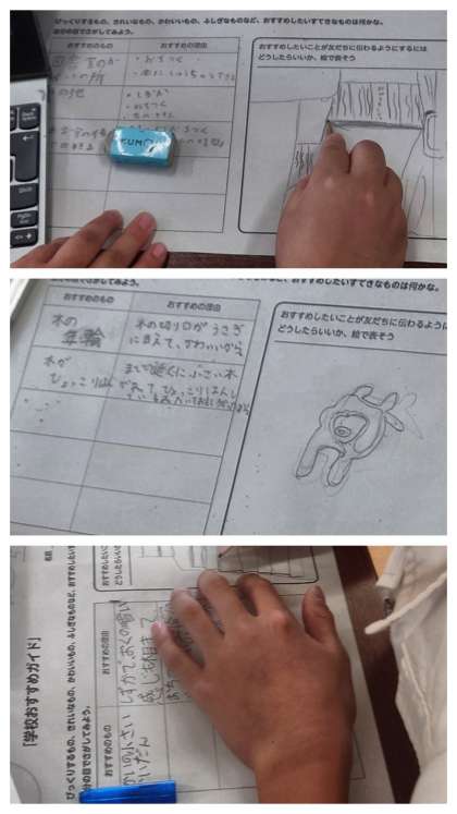 そして、おすすめしたいことが友達に伝わるようにするためにはどうすればよいか、絵に表しました。