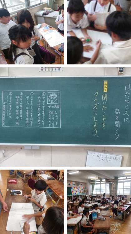 今日は、実際に学校で働いている教職員から「どんな仕事をしているのか」「どんなことに気をつけているのか」「大変なことは何か」など、聞き取ったことをクイズにして発表します。