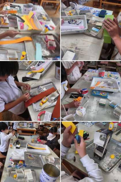 動きを確かめながら、つくりたいおもちゃを考えます。