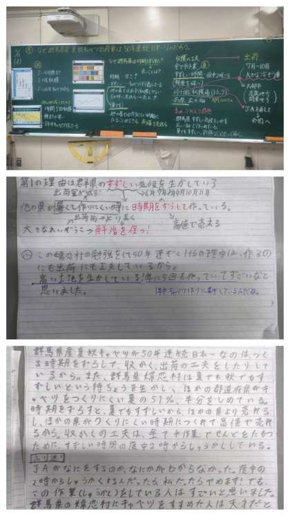 今日は、群馬県産の夏・秋キャベツの出荷量が50年間連続日本一であるのはなぜかについて教科書を中心に調べました。