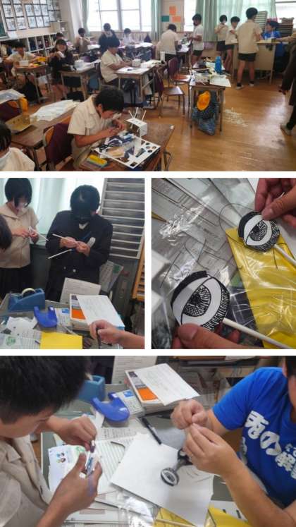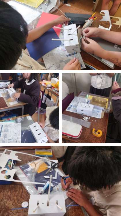 図工科の時間は、「くるくるクランク」の製作をしています。