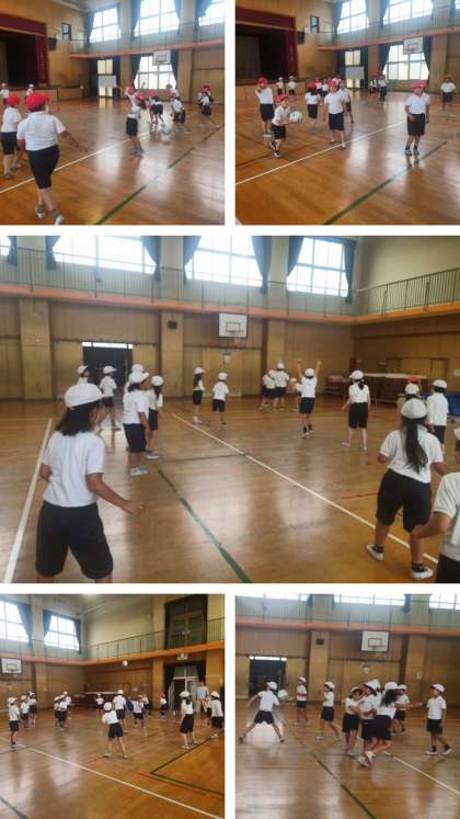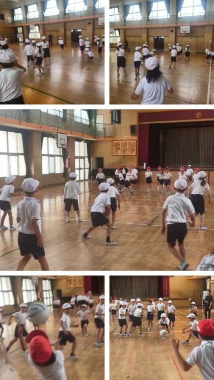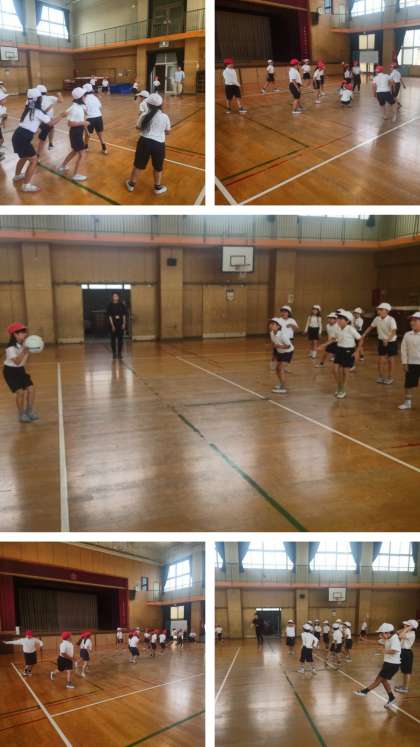 2チームに分かれ、ボールを元気に楽しく投げ合いました。