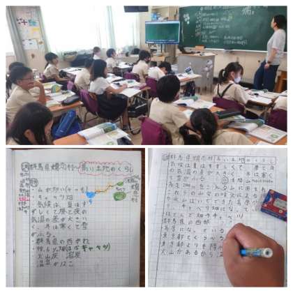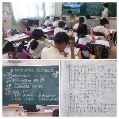 社会科の時間は、山に囲まれた高い土地にある群馬県嬬恋村のようすについて調べました。
