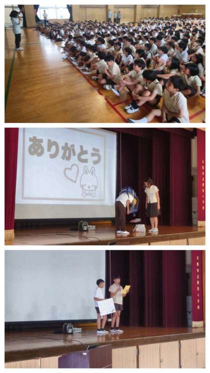 続いて、代表委員会の子どもたちから、今週のスマイルことば「ありがとう」を紹介しました。