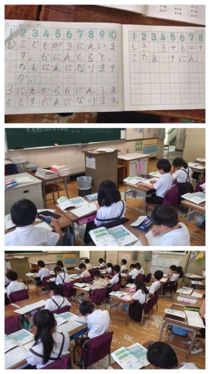 「こどもが3にんいます。6にんくると なんにんに なりますか。」