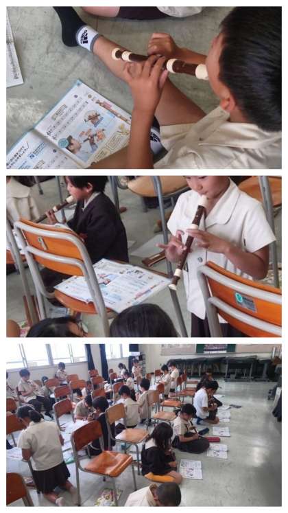 音楽科の時間は、リコーダーで「雨上がり」の曲を練習しました。