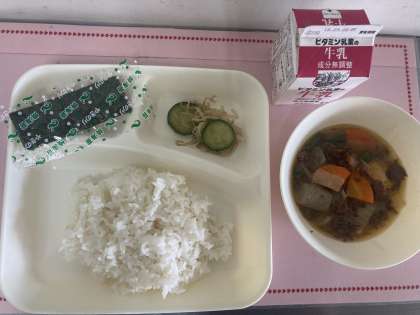 「牛肉と野菜のいため煮」は、牛肉、つなこんにゃく、厚揚げ、玉ねぎ、にんじん、さんどまめを使用し、砂糖、みりん、塩、濃口しょうゆで甘辛く味付けしています。