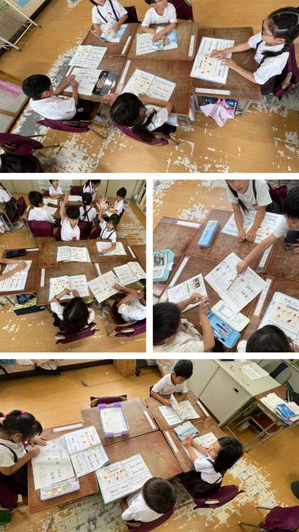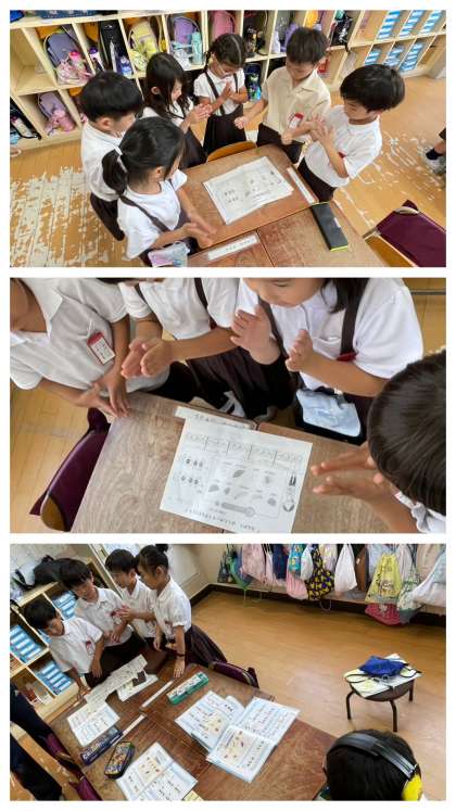 音楽科の時間は、みんなで「リズムづくり」をしました。