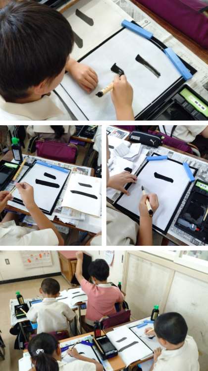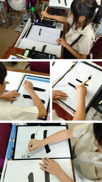 始筆の筆をおく穂先の向きに気をつけて、「トン・スー・トン」で書きます。