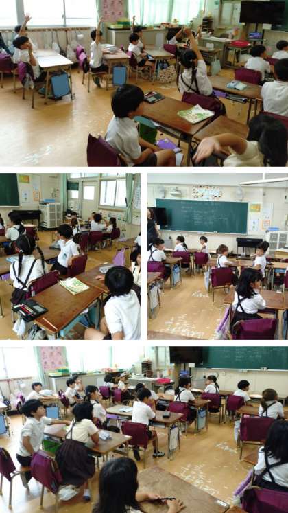 「ぼうしをかぶる」「水分をとる」「しっかり食べる」「体調に気をつける」など、熱中症にならないようにするために、どんなことに気をつけてすごせばよいのか学習しました。