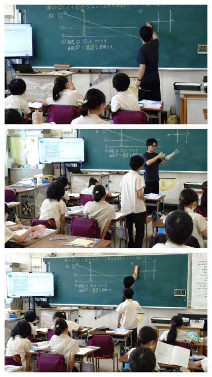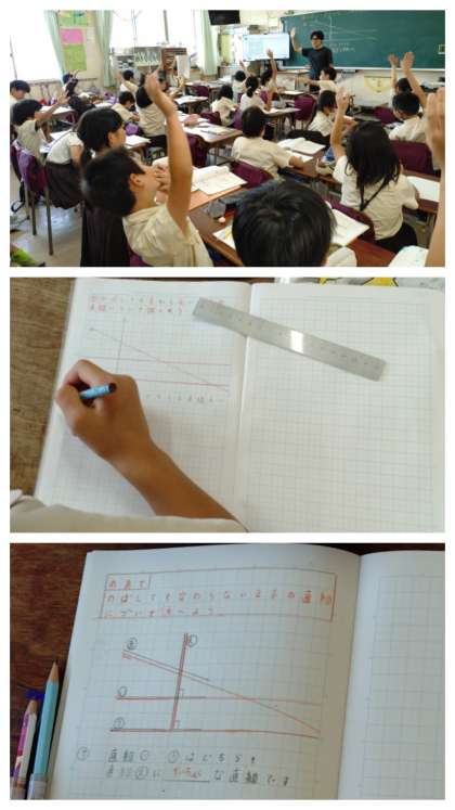 算数科の時間は、のばしても交わらない2本の直線について学習しました。