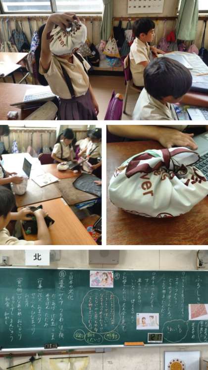 子どもたちは、風呂敷を実際に使ってみる体験を通して、そのよさや便利さに気づき、日本の伝統文化に関心をもつことができました。