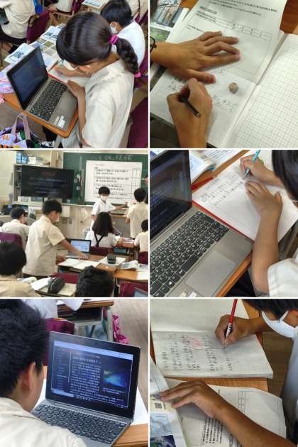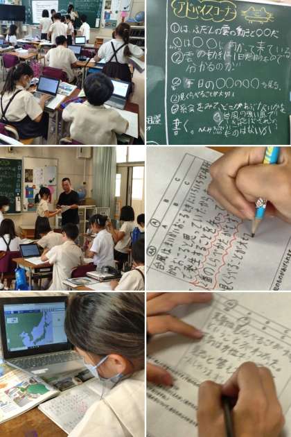 「台風は、どこで発生して、どのように動いて日本へくるのか」「台風はどの方位からどの方位へ動くのか」「台風から身を守るために、自分は何をするのか」について自分のペースで調べ、その後、台風について関心のあるテーマを調べていきました。