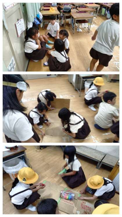 グループに分かれて、子どもたちはわくわくした表情で何やら準備をしています。