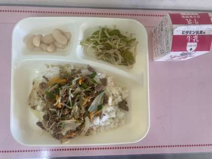 7/7(月)の給食はおさつパン、牛乳、鶏肉と野菜のスープ煮、ジャーマンポテト、きゅうりとコーンのサラダです。