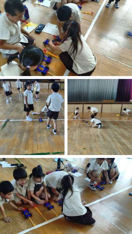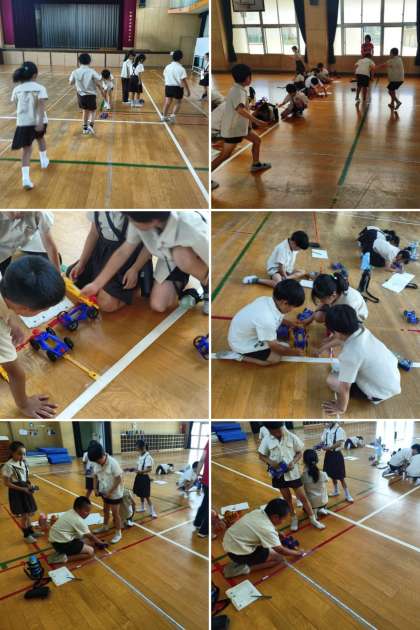 ゴムで動く車で、どこまで走るかな(3年生) 〜7月4日〜