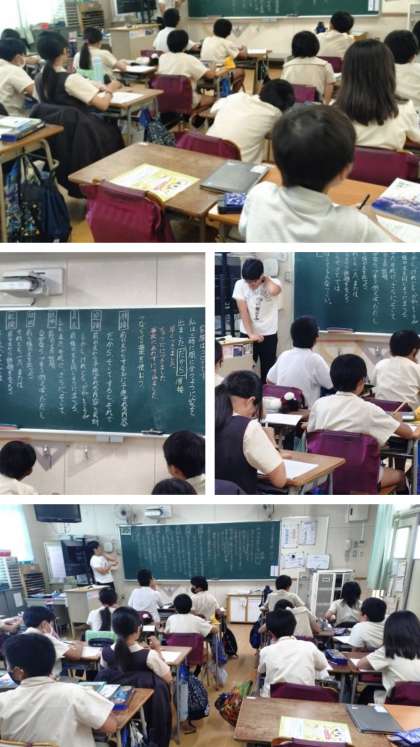 国語科の時間は、「順接」「逆説」「並立」「説明」などの「つなぎ言葉」の使い分けについて学習しました。