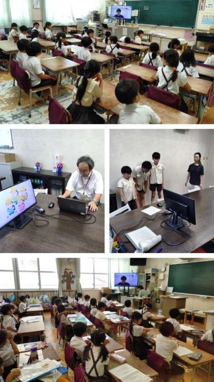 今週は、各教室と校長室をオンラインで結んで全校朝会を行いました。