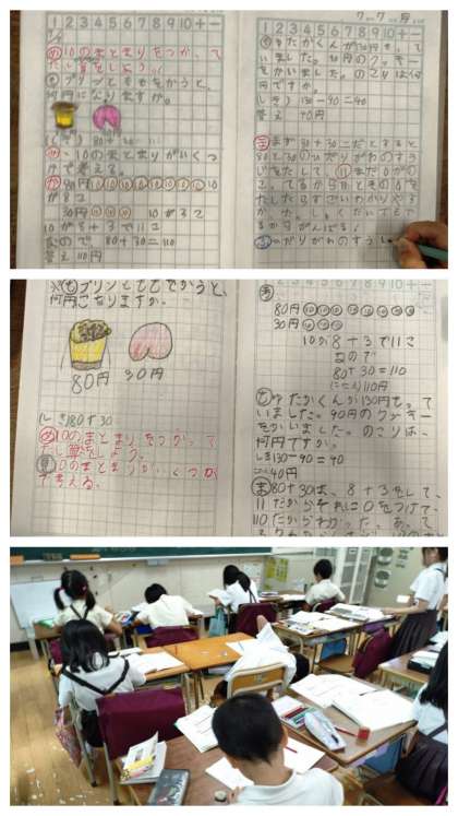 80円のプリンと30円のももを買うと、何円になるでしょうか。