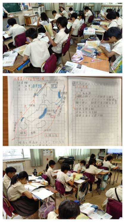 地図帳で銚子の場所を確認したり、沖合漁業のようすを教科書で調べたりして学習しました。