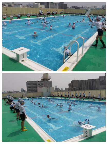学校の水泳学習では、泳力を伸ばすことはもちろんですが、泳ぎを身に付けることで、自分の命を守るということも大切な目的です。