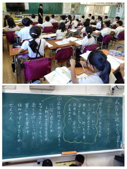 今日は、身の回りにどんな広告があるのか出し合った後、広告は何のためにあるのか、みんなで話し合いました。