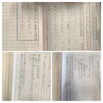 国語科では、「広告を読みくらべよう」の学習をしています。