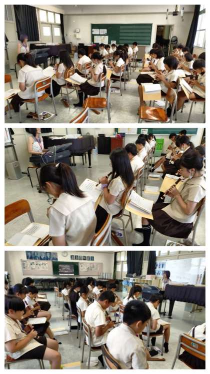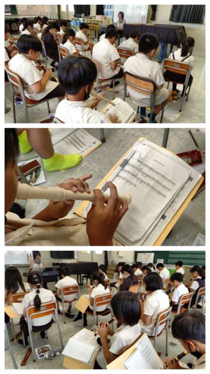 音楽の時間は、リコーダーでロシア民謡「コロブチカ」の練習をしました。