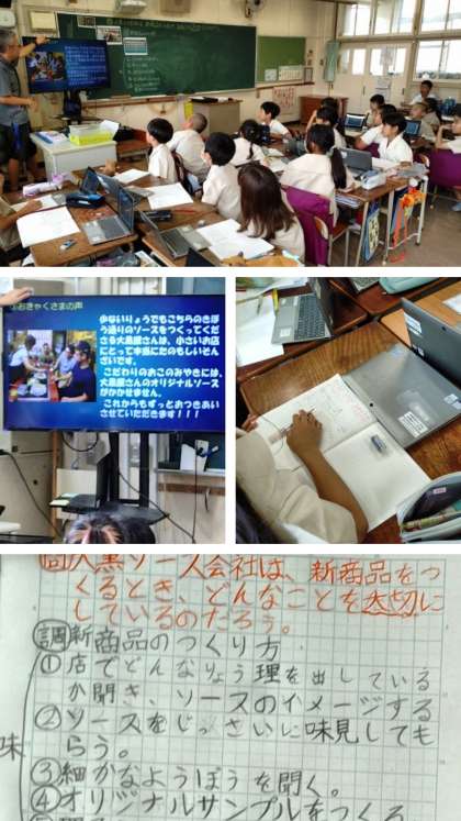 社会科の時間は、地元のソースメーカー「大黒屋」のソースづくりについて学習しています。