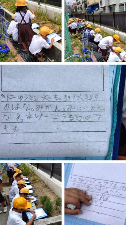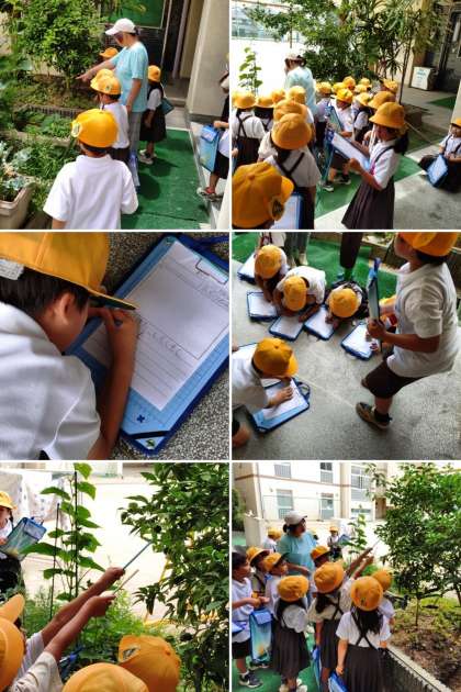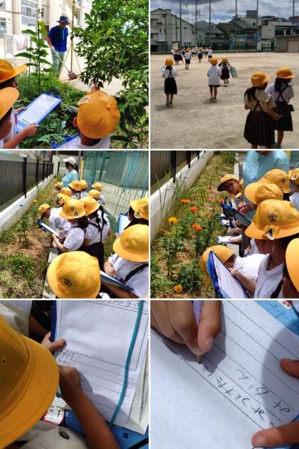 生活科の時間は「夏の自然」を見つけてワークシートに記録しました。