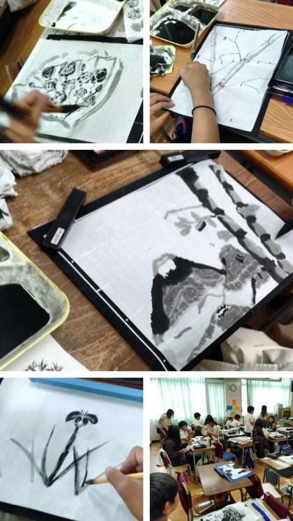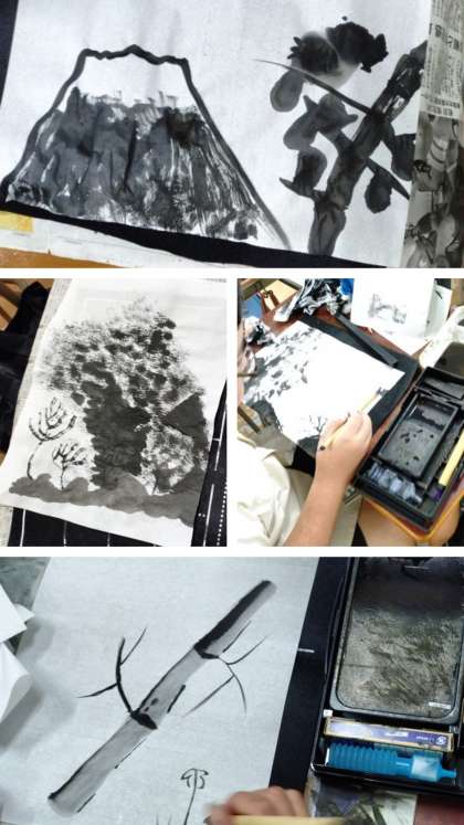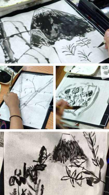 筆を使って、にじみやぼかしなど墨のよさを生かし表現しました。