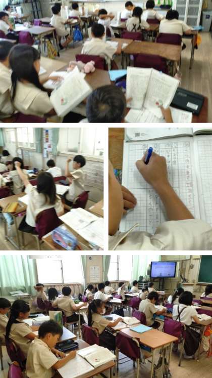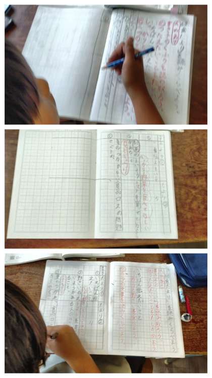 国語科の時間は、教科書の資料「給食だより」を読み比べて、書き手の工夫やいちばん伝えたいことを読み取っていきました。