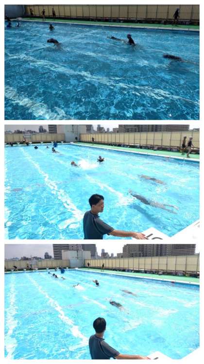 今日は、今年のプール学習でどれぐらい水の中を進んだり泳いだりできるようになったか確かめました。