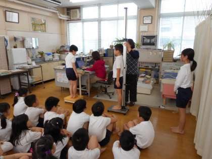 今日は、4年生が発育測定を行っていました。養護教諭の北田先生が、今年から座高の測定がなくなったことや運動することで身体の痛みがあるかどうかなどの変更されていることをお話しされていました。また、手足の爪を適切な長さに切ることも言われていました。ご家庭でも身長・体重、爪についても見てあげてください。