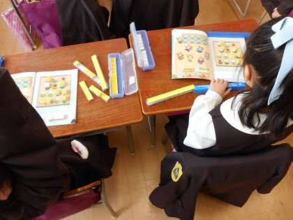 いよいよ、時間割も決まり本格的に学習も行われています。1年3組では、算数科「なかまづくりとかず」でブロックを使って学習していました。5年3組では、国語科「だいじょうぶ だいじょうぶ」で、人の気持ちを考えながら音読しようというめあてで登場人物の気持ちを学習していました。教室や運動場で、子どもたちの真剣に取り組んでいる姿は、一番尊いものだと思います。(校長室より 4月15日)