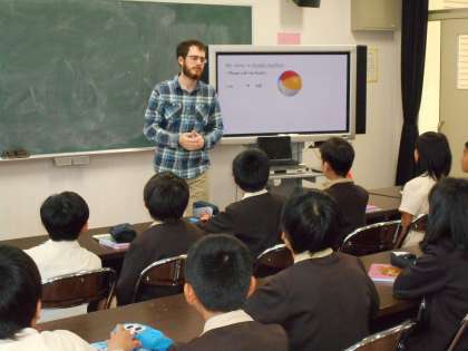 C-NETとは、City-Native English Teacherを略してC-NETと呼んでいます。5・6年生を対象に担任の先生と一緒に年間17時間程度、外国語活動をしていただきます。今年からAustin Godfrey(オースティン ゴッドフリー)先生に教えていただくことになりました。1年生から4年生も2時間程度教えていただく予定です。 (校長室より 4月15日)