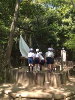 そして、その奥にあるアスレチックに進み、子どもたちは笑顔いっぱいで体を動かすでした。